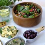 Meniul cinei e o nebunie de gusturi surprinzătoare creată doar cu ingrediente alese pe sprânceană. Platouri cu specialități care mai de care mai aromate și măsline verzi umplute cu usturoi și ardei iute (pe care le găsești aici), salate colorate cu flori, fructe și brânză pecorino, stropite cu ulei de măsline extravirgin BIO Kanakis (pe care îl găsești aici), rissoto cu sparanghel, mini burgeri cu pește spadă și cheesecake raw vegan cu afine și lavandă.