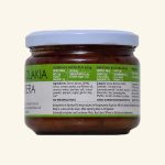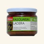 Fasole verde pastai 59%, ceapa, pasta de tomate, ulei de floarea soarelui, rosii, apa, patrunjel, sare, ceapa pudra, piper, zahar, usturoi, frunze de dafin.