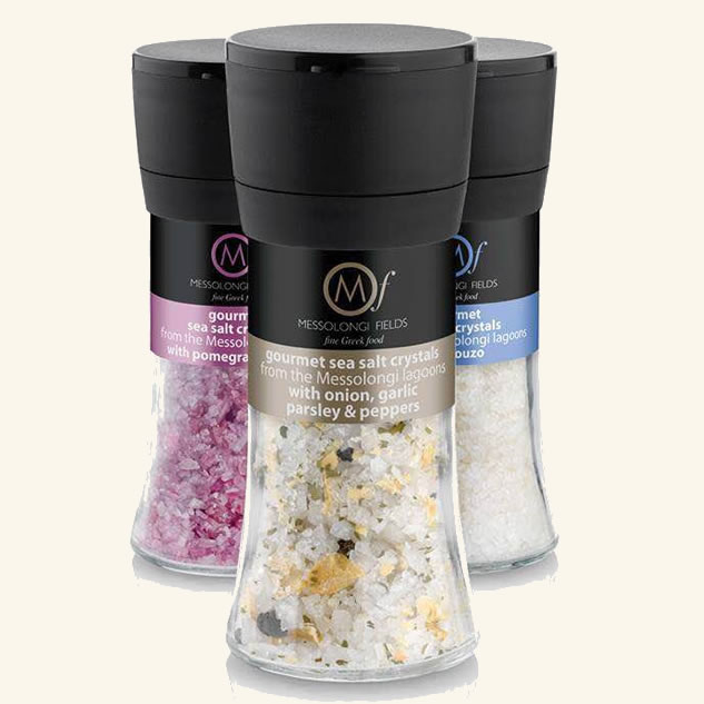 Cristalele de sare de mare provenind din lagunele exotice din regiunea Messolongi sunt desavarsite cu un strop de anason, obtinandu-se o varietate de sare care va conferi un gust deosebit oricarui produs culinar.