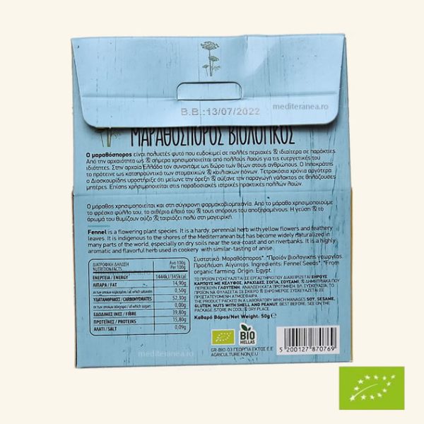 Provenite din agricultură 100% ecologică, te vei bucura din plin de aportul de fibre, substanțe minerale și vitamine pe care semințele de fenicul îl au. Bogate în antioxidanți, printre beneficiile de bază ale acestor semințe remarcabile se numără îmbunătățirea sistemului digestiv și a ficatului, scăderea nivelului de colesterol, reglarea tensiunii arteriale.