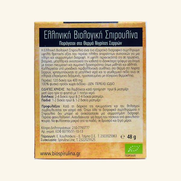 Spirulina BIO în tablete este un supliment alimentar vegetal, obținut din microalge cultivate în regiunea geotermală Nigrita (Therma), Grecia. Această zonă este recunoscută pentru condițiile naturale ideale de creștere, folosind apă minerală termală și lumină solară naturală pentru un proces de producție sustenabil și curat.