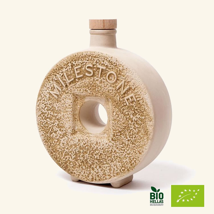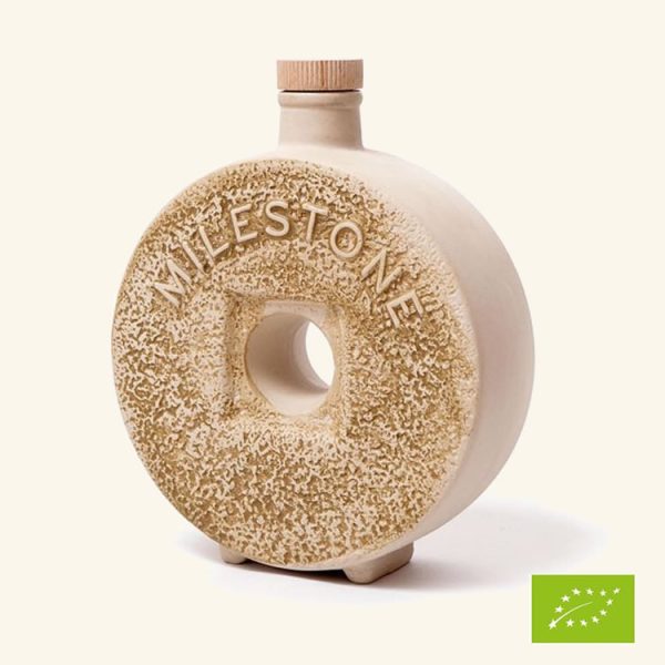 Alegerea ambalajului din lut, cu dop de pluta, pentru uleiul MILESTONE, incheie ciclul de creatie al unui produs in integralitate natural si organic. Fiecare etapa a procesului este realizata manual, ceea ce face din fiecare sticla